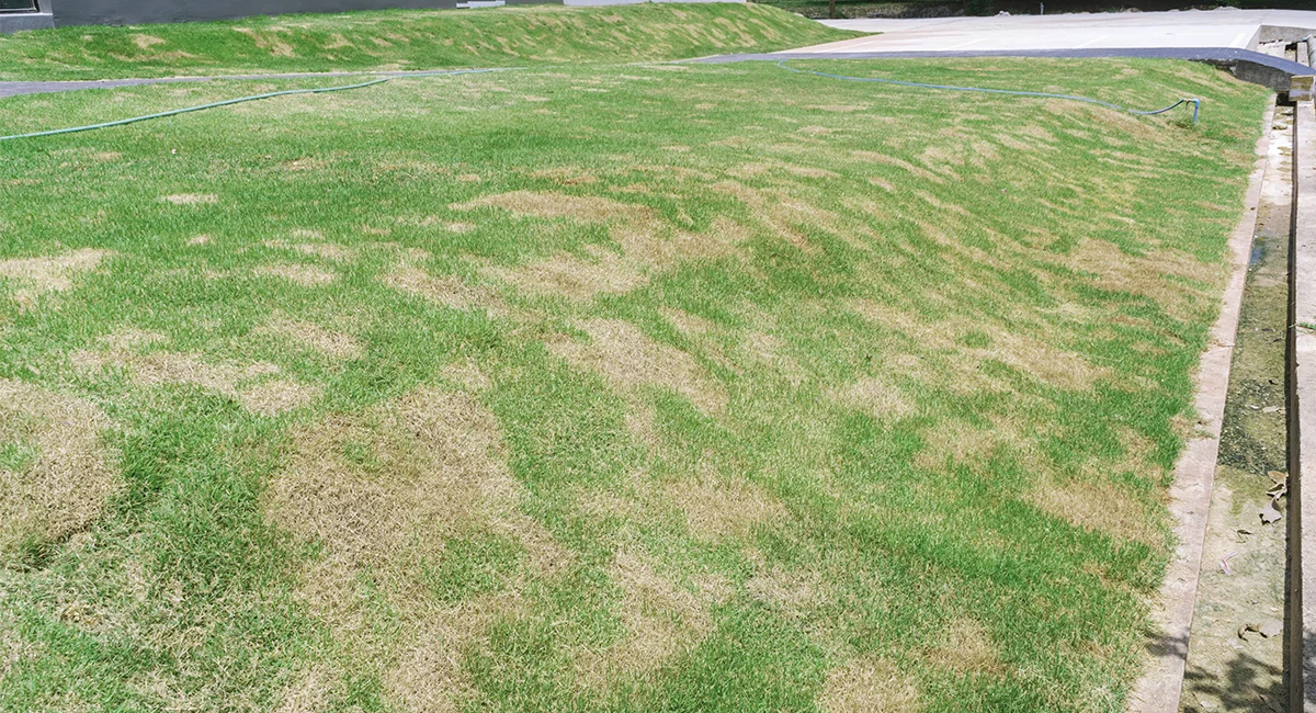 - Grama Marrom ou Seca: Quando a grama não recebe água suficiente, ela entra em dormência, o que resulta em descoloração e textura ressecada.
